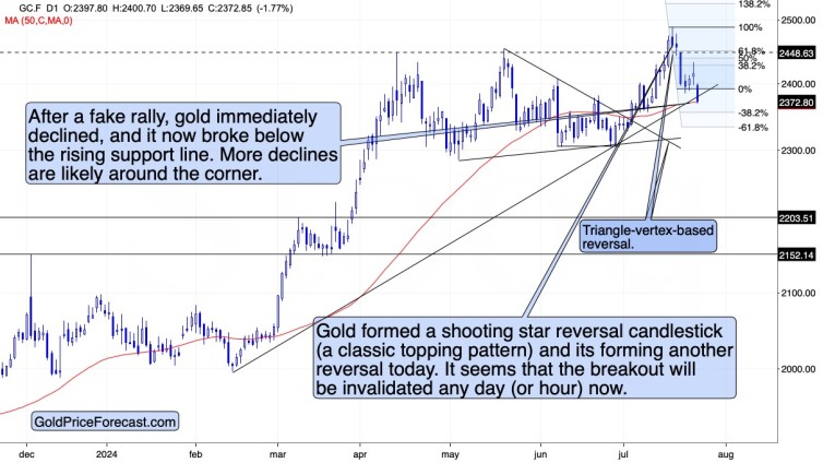 Namely, due to yesterday’s intraday reversal, the very short-term outlook deteriorated, and gold already plunged in the overnight markets.
