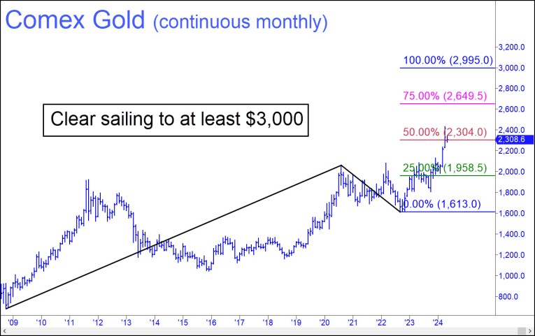 The question is, will today’s profligate users of energy — i.e., all of us — be able to afford it if we have to pay for it with the hardest currency of them all: gold? We’ll see who blinks first in the next recession, when demand for crude falls. Regardless, the strong rise we have seen lately in gold’s price looks certain to continue. It will be boosted by the increasing success of Putin & Friends in creating alternative bullion markets that bypass the criminally rigged, paper-shuffling bourses of Chicago, London, Zurich and Hong Kong.