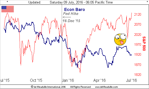 'Course, that rightmost huge "swing" didn't fool the Baro, in a week where reports saw May's factory orders decline for their 14th slip in the past 22 reported months, the trade deficit grow, and with further respect to June's "jobs", the unemployment rate rise and hourly earnings growth slow. Here's the Economic Barometer: