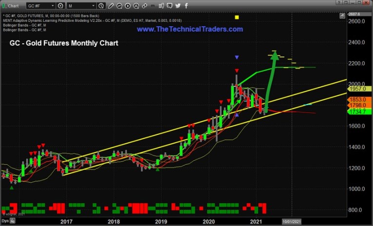 Our ADL predictive modeling system suggests the $1720 support level will hold, prompting a new rally to levels above $2200 within 30 to 60+ days. The ADL system predicts an aggressive move in Gold near May or June 2021. The move higher may happen earlier than the ADL Monthly predictions indicate. There is a chance that a move back above $1850 starts the move higher before the end of March or April 2021 – propelling Gold toward the $2300+ peak. The actual peak level predicted by the ADL predictive modeling system is $2315.
