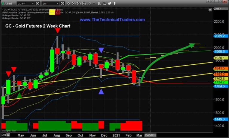 If these ADL price predictions are accurate and Gold does find a solid bottom near $1700, then we would want to watch for an upward price trend to start to setup near March 15th or so, attempting to push Gold prices above $1850 to $1900. If that happens, then the next phase of the ADL price predictions would become even more relevant. That means the upward price trend would attempt to target the $2050 level, then the $2300 level before June or July 2021.