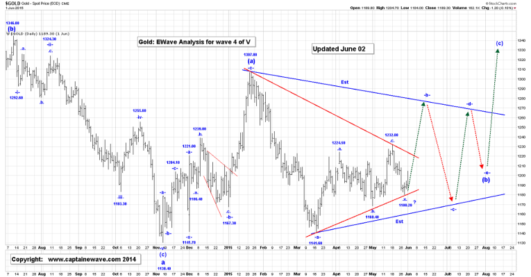 Gold rallied to 1194.80, in the overnight session, at the time that this Post was being written. As we said in yesterday's End of Day Post we now appear to have a three wave rally in place from 1181.10 to 1204.60, which suggests that gold is going to be dropping below the 1181.10 low, at least one more time.