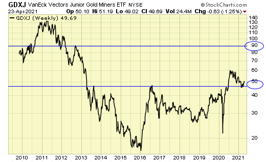 GDXJ met support, and has resistance at 90.