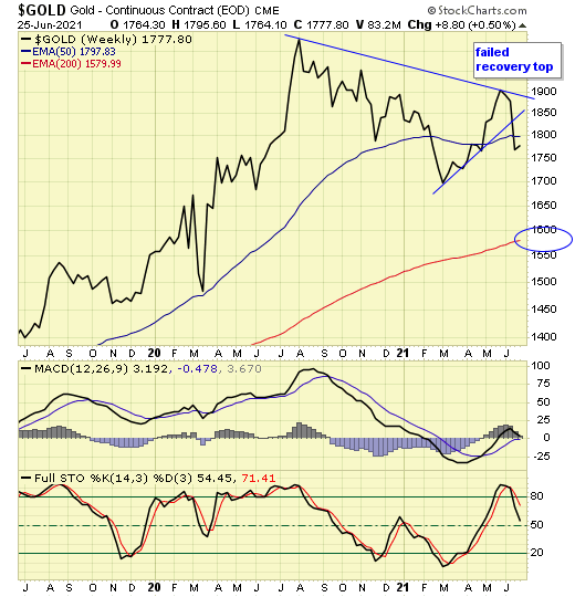 Major support for gold is now at the weekly 200ema, just below $1600.