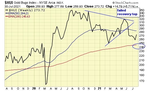 Major support for $HUI is at the 200ema, around 245.