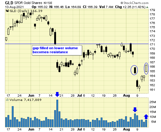 Down gap had twice the volume as the up gap, suggesting sellers are in control.