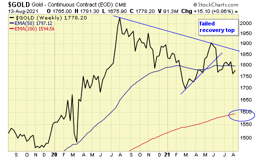 Major support for gold is now at the weekly 200ema, just below $1600.