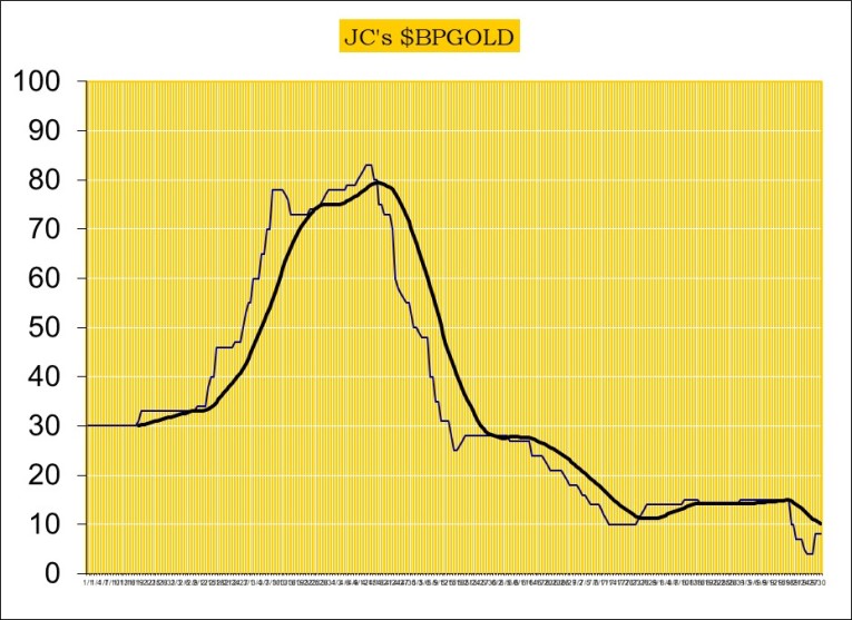 #2 – BPGOLD is now below 10%, and in all three previous instances when BP was below 10%, prices recovered nicely.