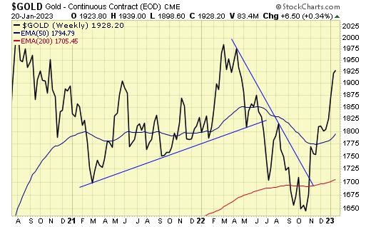 Trend is UP for gold stocks.