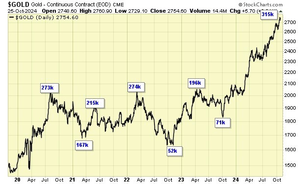 Speculation has topped at 315k, a new all time high.
