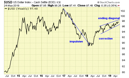 The big picture in the dollar has become clear these past few weeks, as an ending diagonal is taking shape, which when broken, a new down leg will begin.