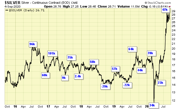 COT data supports lower silver prices overall.