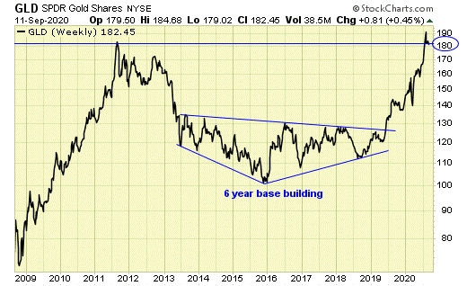 GLD is now testing the breakout point.