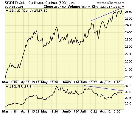 And the divergence between gold and silver deepens.