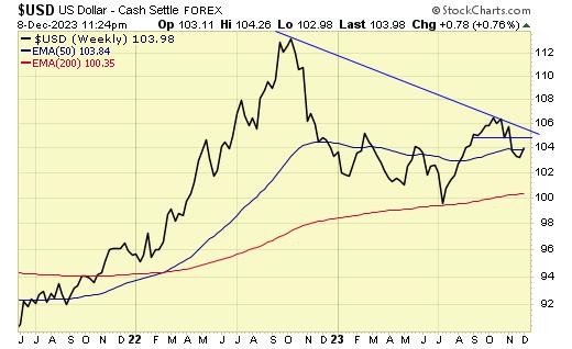 Trend is up for gold and gold stocks, and down for USD.