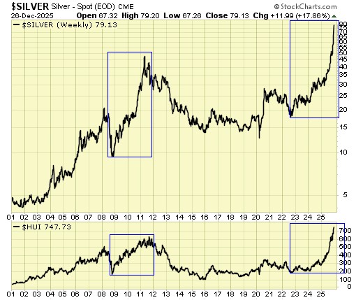 We want to share with you this long term chart, as the current silver price trajectory reminds me of the previous bull market.