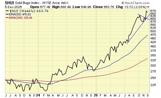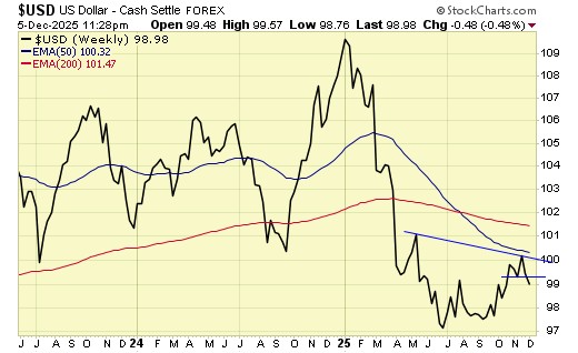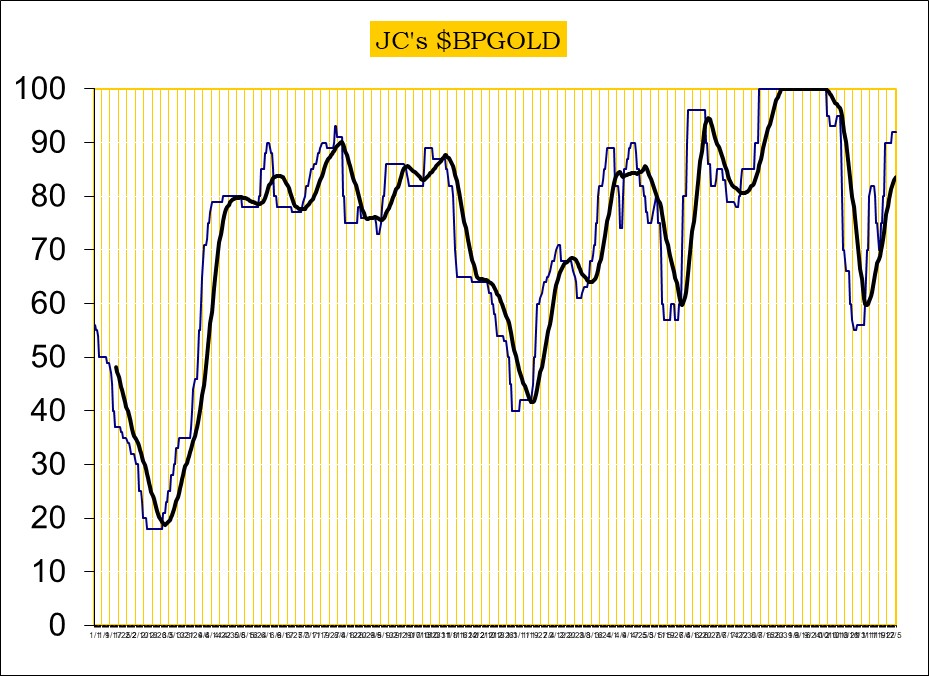 Trend is up for gold & gold stocks, down for USD.