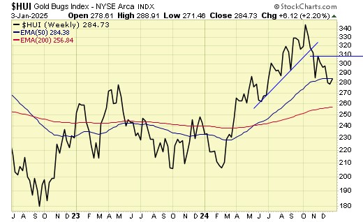 $HUI is promptly rejected at major resistance.