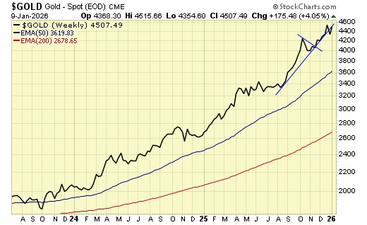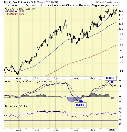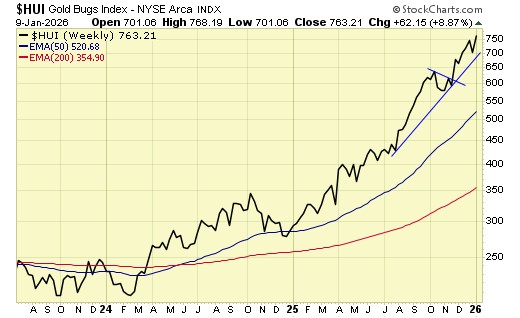 Folks who are holding long term profitable positions should not panic out of this sector from short term volatility, but to remain focused and invested until a monthly reversal to suggest that a top is in.