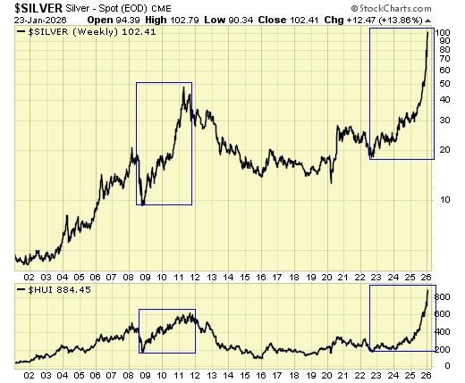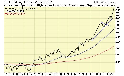 Folks who are holding long term profitable positions should not panic out of this sector but to remain focused and invested until a monthly reversal to suggest that a top is in.