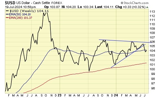Trend is up for gold and gold stocks, down for the USD.