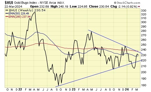 What is more alarming is that gold prices have been rallying higher since 2022 while gold stocks are struggling with lower highs.