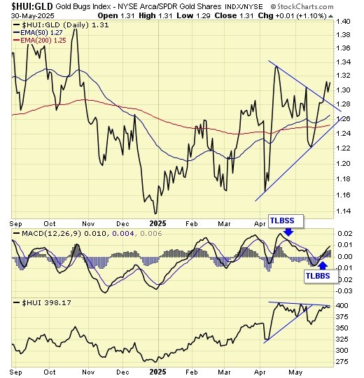 Trend is up for gold & down for gold stocks, and USD.