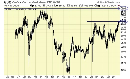 GDX rejected at resistance.