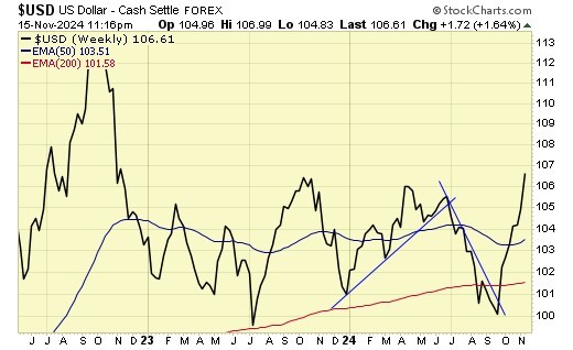 Trend is up for USD and down for gold & gold stocks.
