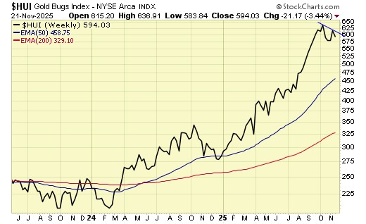 Trend is now DOWN for gold stocks.
