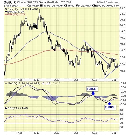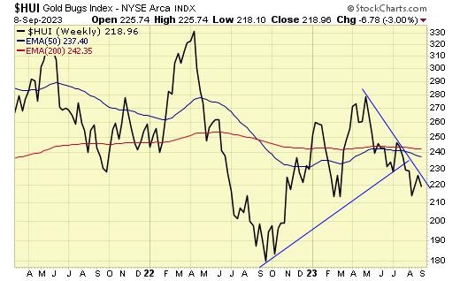 Trend is DOWN for gold stocks.