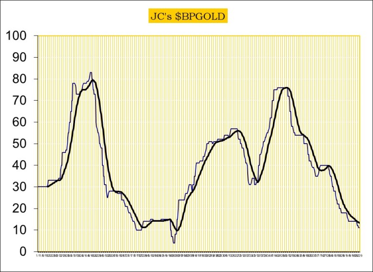 Trend is DOWN for gold stocks.