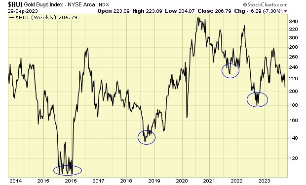 In recent years, gold stocks have a tendency to bottom in the summer/fall time frame.