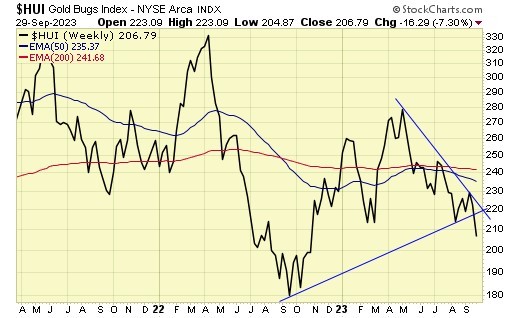 Gold stocks broke down this week.