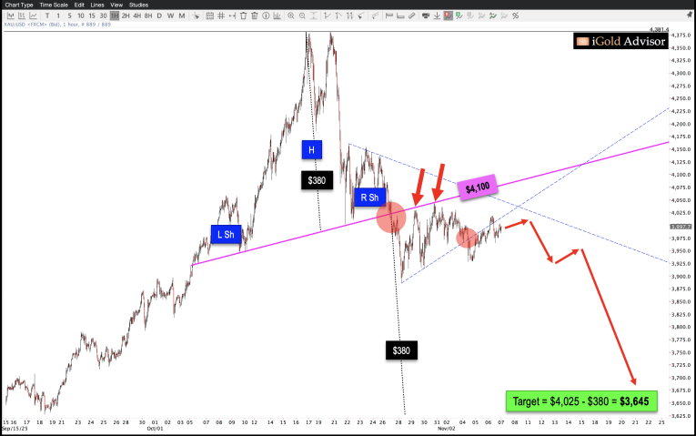 This is our highest probability expectation for gold over the short run: the precious metal will round down and decline toward $3,645 over the coming months.