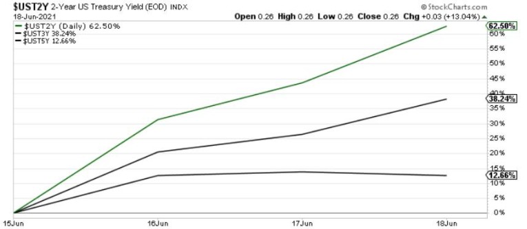 With the FED’s announcement turning the financial markets upside down, the U.S. 10-Year Treasury yield’s rollercoaster performance didn’t capture the magnitude of the move. For example, with the front-end of the U.S. yield curve becoming increasingly unhinged, the U.S. 2-Year, 3-Year and 5-Year Treasury yields surged by more than 62%, 38% and 12% respectively following the FED’s announcement.