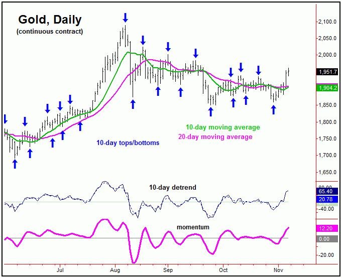 The fact that gold was able to take out the 1941.00 figure in Thursday's session is now our best indication/confirmation that the 72-day cycle bottomed out back in late- September - and with that is headed back to the upside in the coming months.