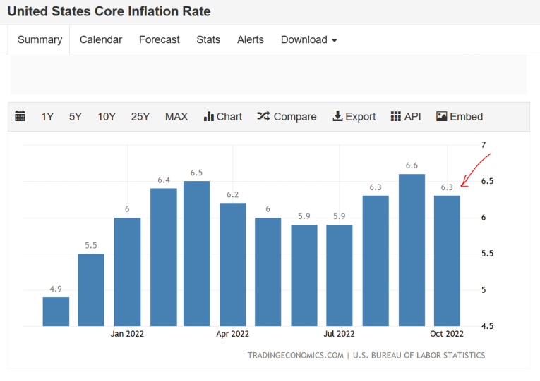 The Core Inflation rate fell to 6.3% in October and was below the 6.5% estimate. However, it remains high and above the Fed's 2.0% target. Nevertheless, markets soared on the news inferring the Fed could take a softer approach with rate hikes.