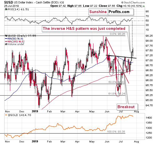 We previously commented on the USD Index by describing the possible (!) implications of the potential (!) pattern that might have been forming. Until a given pattern is completed, it has practically no direct implications. If it was any other way, a partial pattern would itself become a pattern (a.k.a. formation) with its own name and implications.