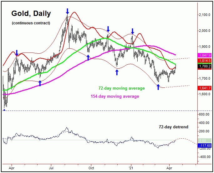 Going further with the above, back in early-March I noted a rare signal had formed with the gold market. That signal came from our 72-day 'oversold' indicator, which is shown in red on our 72-day cycle chart: