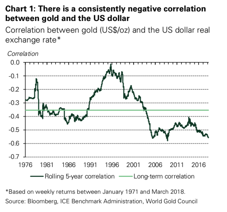 This is understandable given gold’s consistently negative correlation to the US dollar.