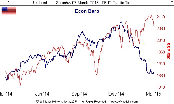 Further, from the "Ignorance Is Bliss Dept." here is the aforementioned Econ Baro in all of its glistening, updated glory. Therein, is the S&P 500 finally succumbing to the evil clutches of extreme over-valuation?