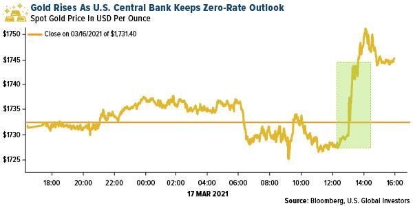 Gold had a second weekly gain despite higher Treasury yields thanks to a weaker U.S. dollar. The yellow metal rose on Wednesday directly following the Fed meeting where bankers kept a zero-rate outlook.