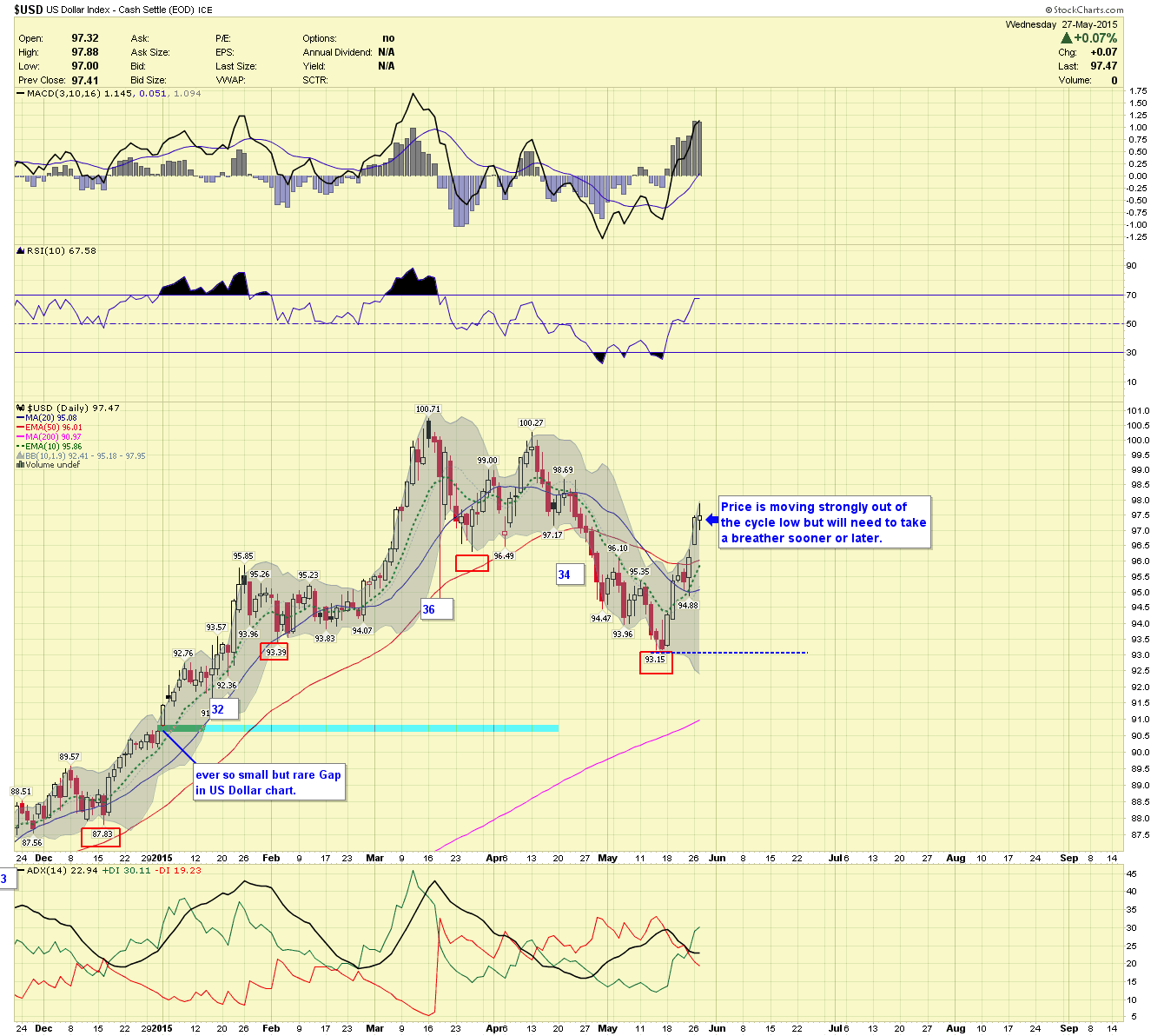 The Dollar is moving firmly out if the cycle low and take a breather sooner or later. I imagine commodities will get a bounce higher when that happens.