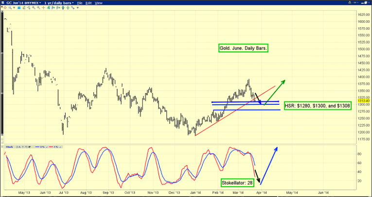 That’s the daily gold chart. There is minor trend HSR at $1308, $1300, and $1280. Gold is currently trading above all three of those prices.