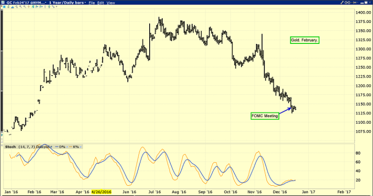 The shorts were obliterated, because gold bottomed the day after the December 2015 FOMC meeting. It soared about $330 an ounce, from about $1045 to above $1375.