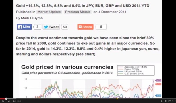 SGT Report: What I wanted to do gentlemen is start with a headline that we rarely see and it's this one which I haven't written yet - "Strong dollar keeps gold prices low for Americans" and the reason I'm saying that is that according to your own blog at Goldcore.com, gold is up 14.3% in Japanese yen this year, 12.3% in euros, 5.8% in British pounds and of course only 0.4% when priced in dollars.