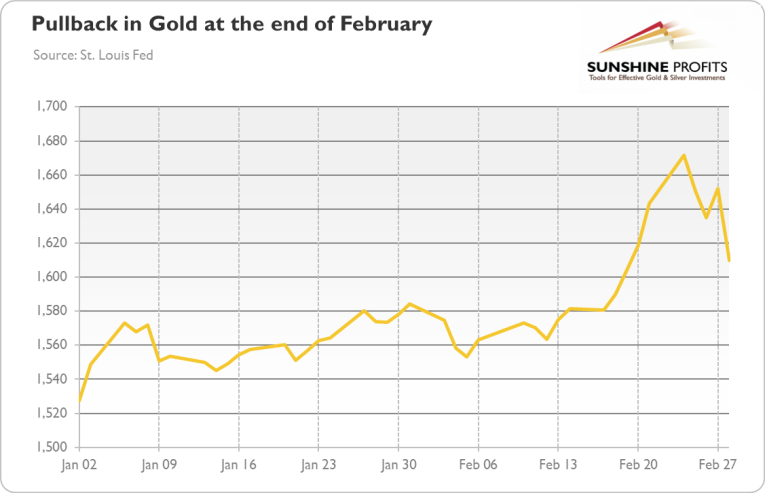 Three important developments have occurred over the weekend and since our last edition of the Fundamental Gold Report. First, the World Health Organization reported on Sunday that “the number of confirmed cases in Hubei province, China, has increased for two successive days after a period of decline.” It means that the epidemic in China may not be peaking yet, especially as China counting methods (excluding asymptomatic infected individuals) may underplay extent of outbreak, according to Caixin.