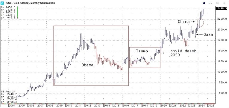 Gold in US-Dollar, monthly chart as of August 18th, 2024. Source: Alyosha