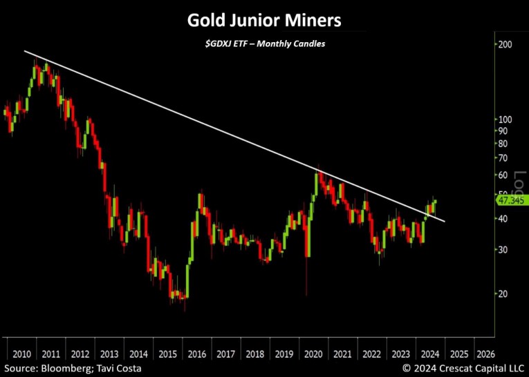 Gold Junior Miners GDXJ, as of August 19th, 2024. Source: Crescat Capital, Tavi Costa